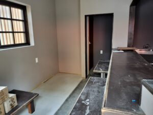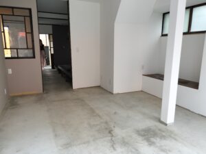 1階の店舗スペース(ここは、以前は餃子屋さん)。こじんまりしていますが、一人で営業するにはちょうど良いかもしれません。トイレは今回の工事で奥に移設されました。