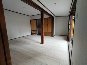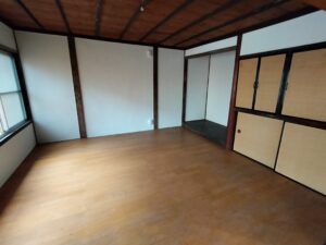 2階の和室の様子です。建物としては、元餃子屋さんの区画で一つ、それ以外で一つという区分けになっているようです。
